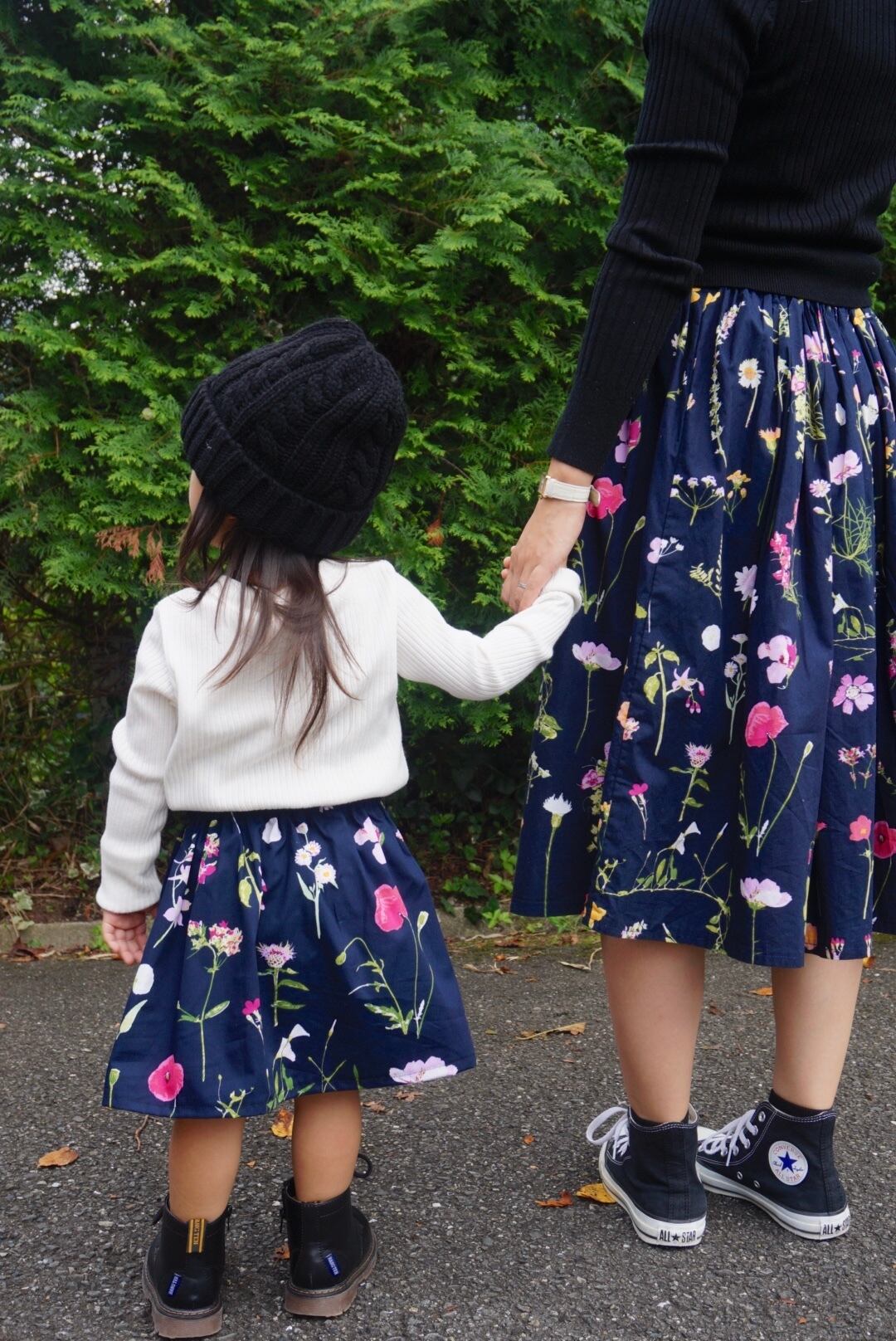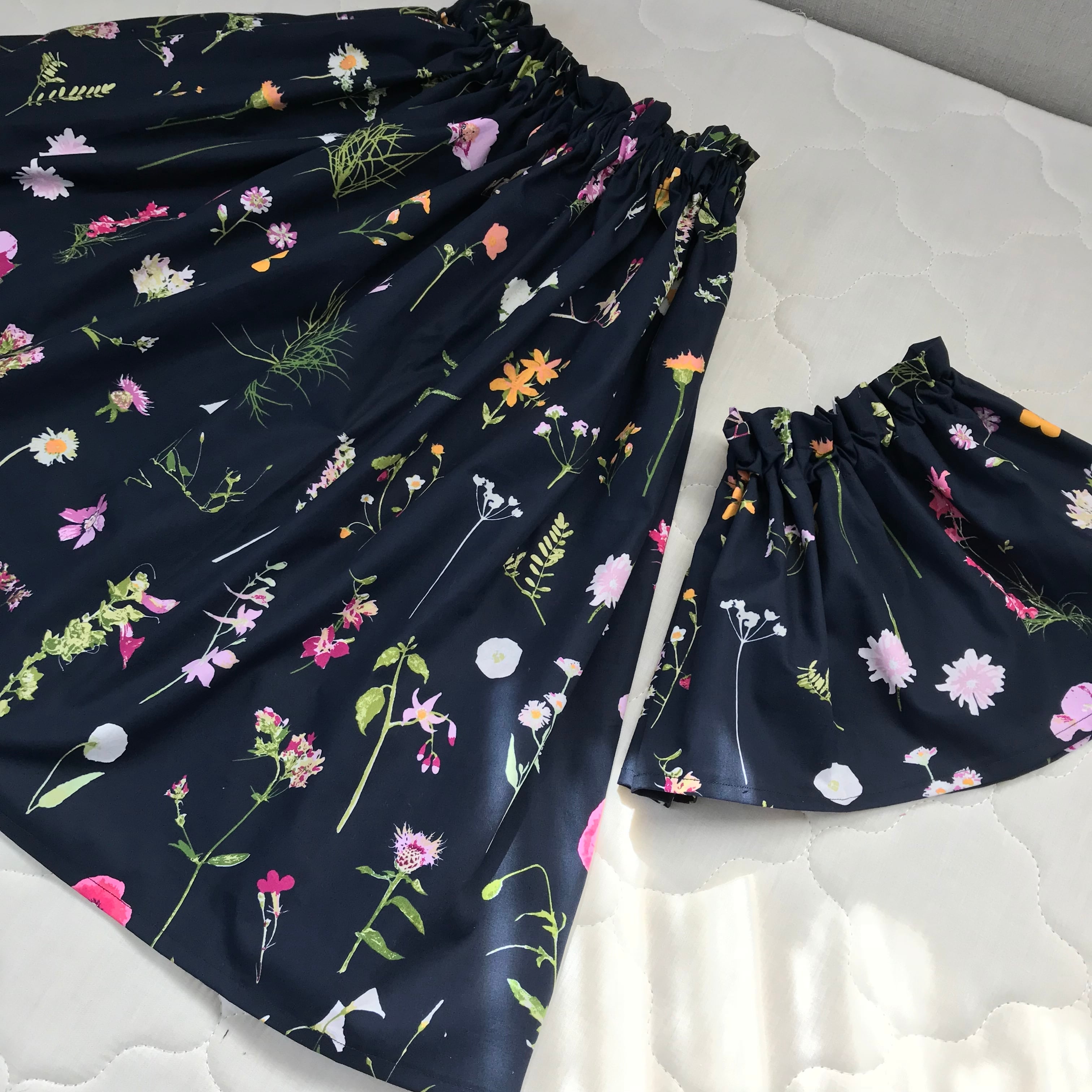 USAコットン生地で作ったお花柄が素敵な親子お揃いスカートです。