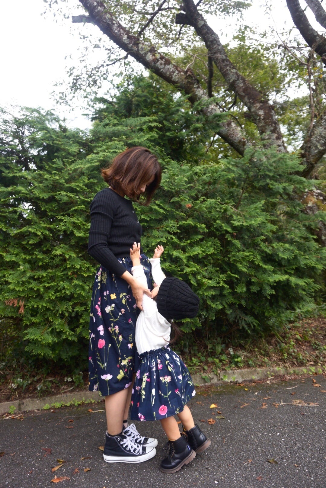 USAコットン生地で作ったお花柄が素敵な親子お揃いスカートです。